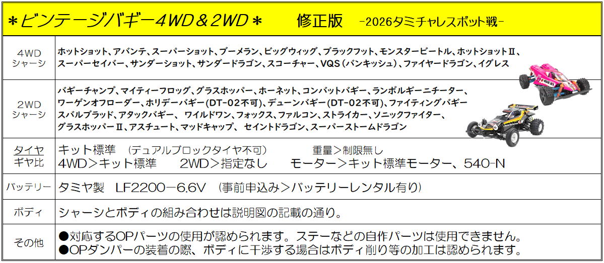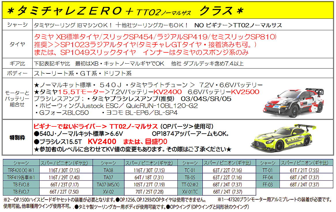 2026年タミヤ+αクラス 使用する タイヤの案内。