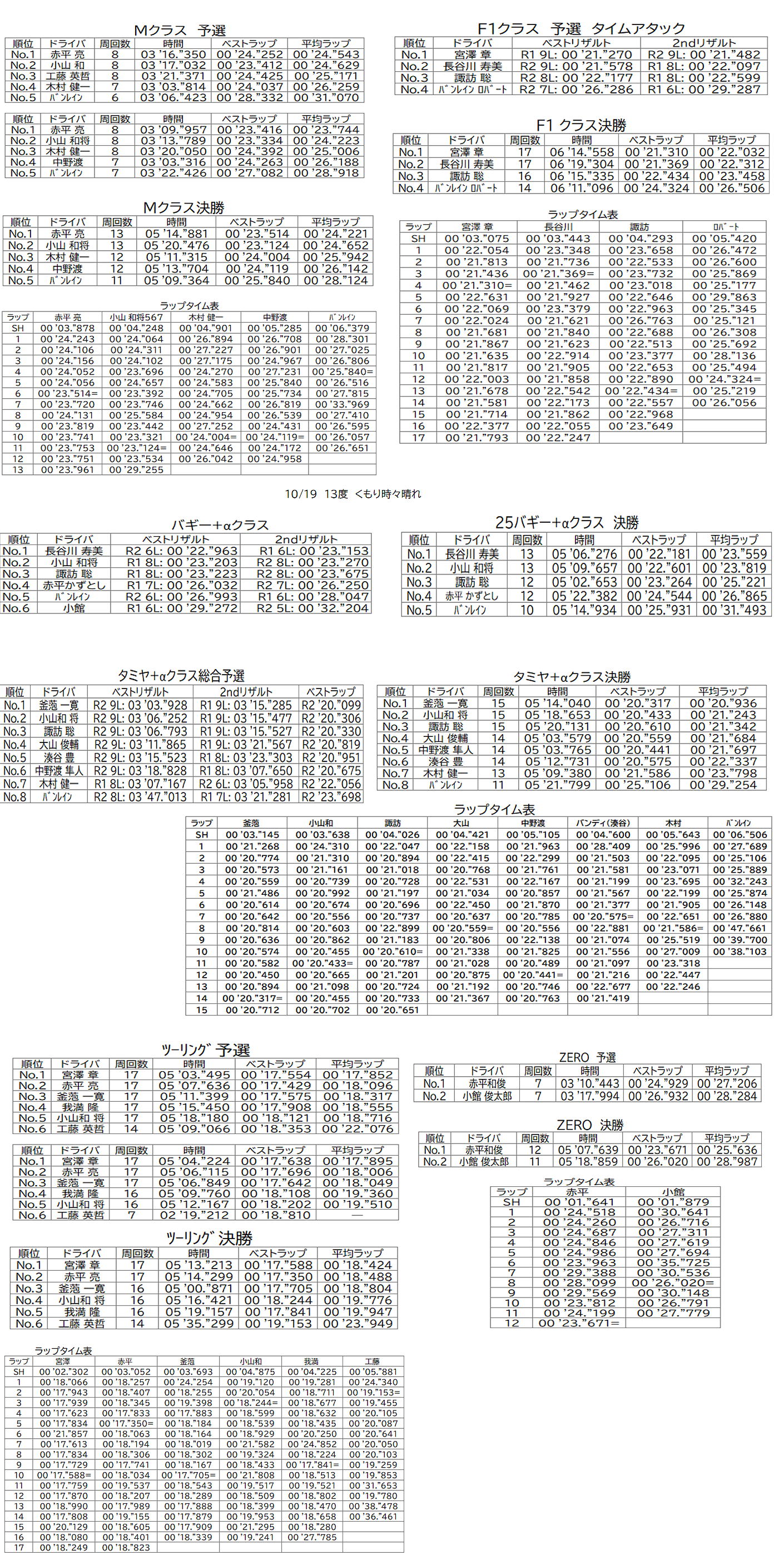 10/16 タミヤ+αクラス 総合表 |